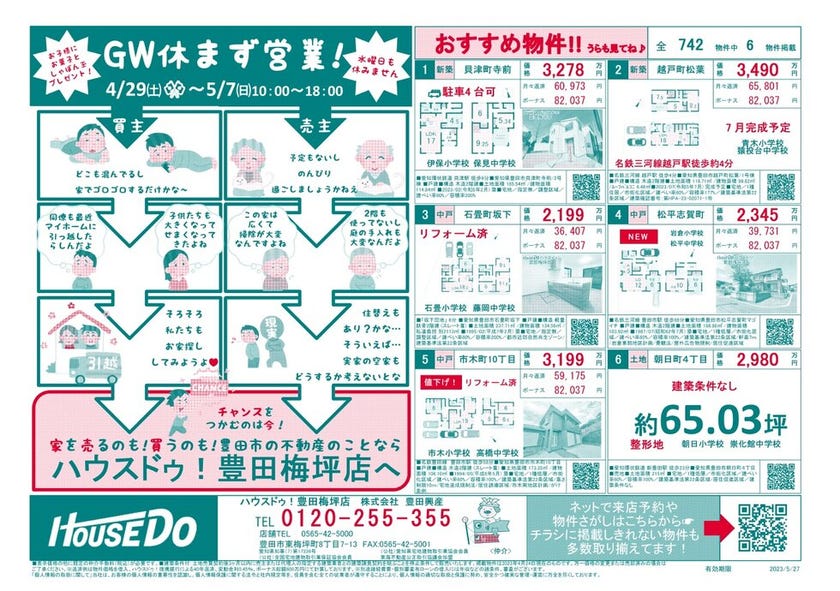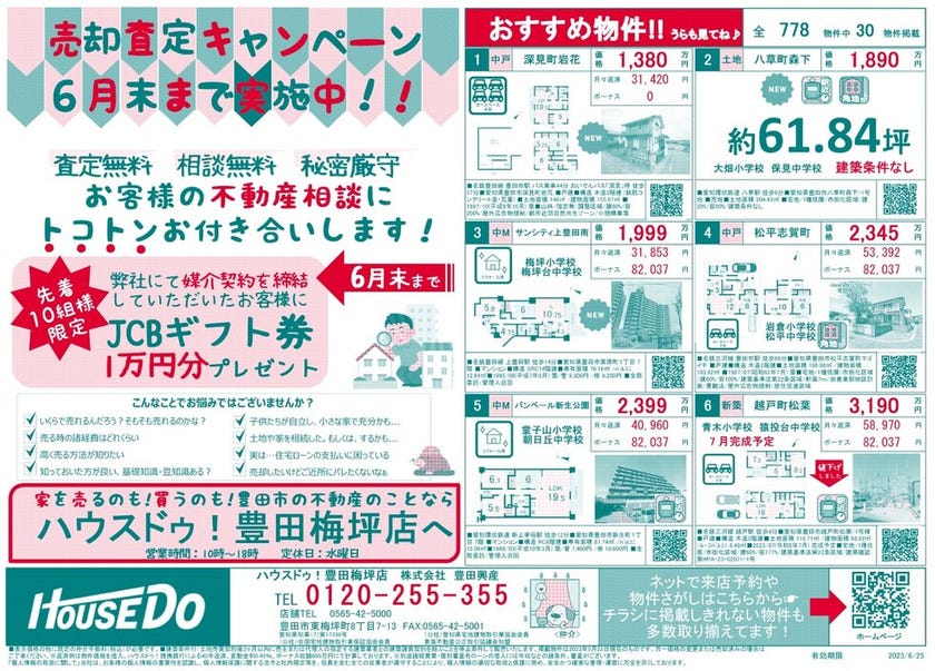 こんにちは、ハウスドゥ!豊田梅坪店です(^^)/ ハウスドゥ!豊田梅坪店では、2023年6月30日までに媒介契約を頂いた売主様へ 『売却査定キャンペーン』を実施しており...