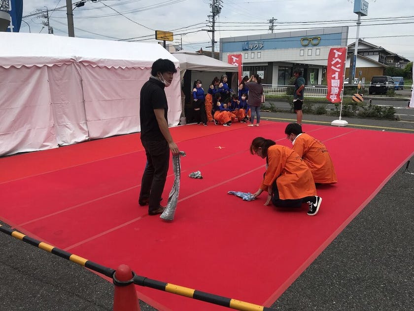 急遽ステージ上にテントを移動させて何とかやり切ることができました!