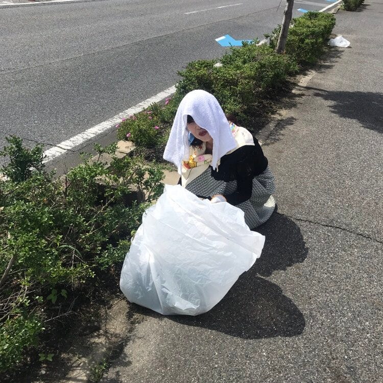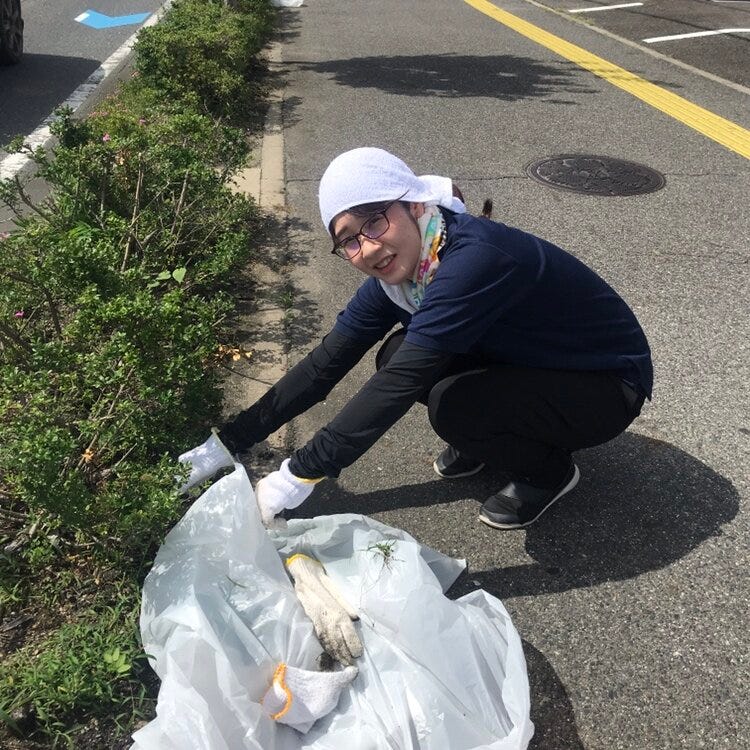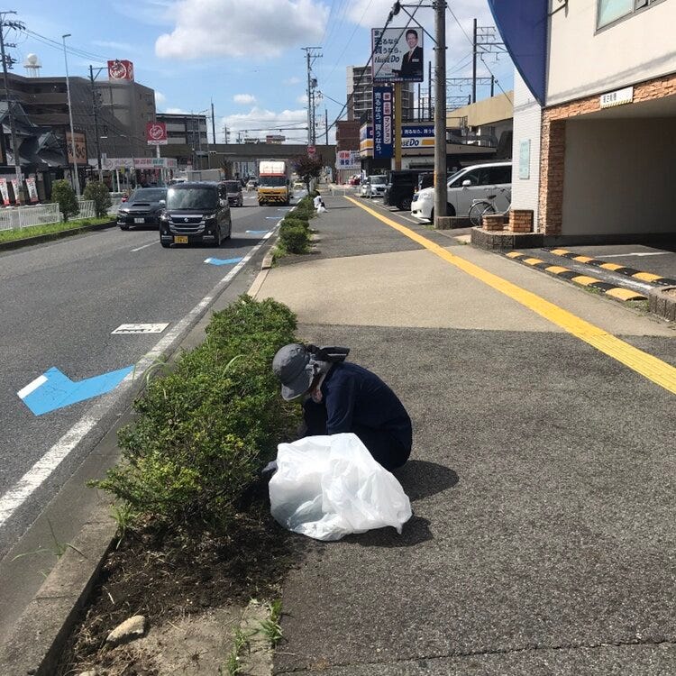 ものすごい暑い中、沿道の草取りをしました😂汗だく