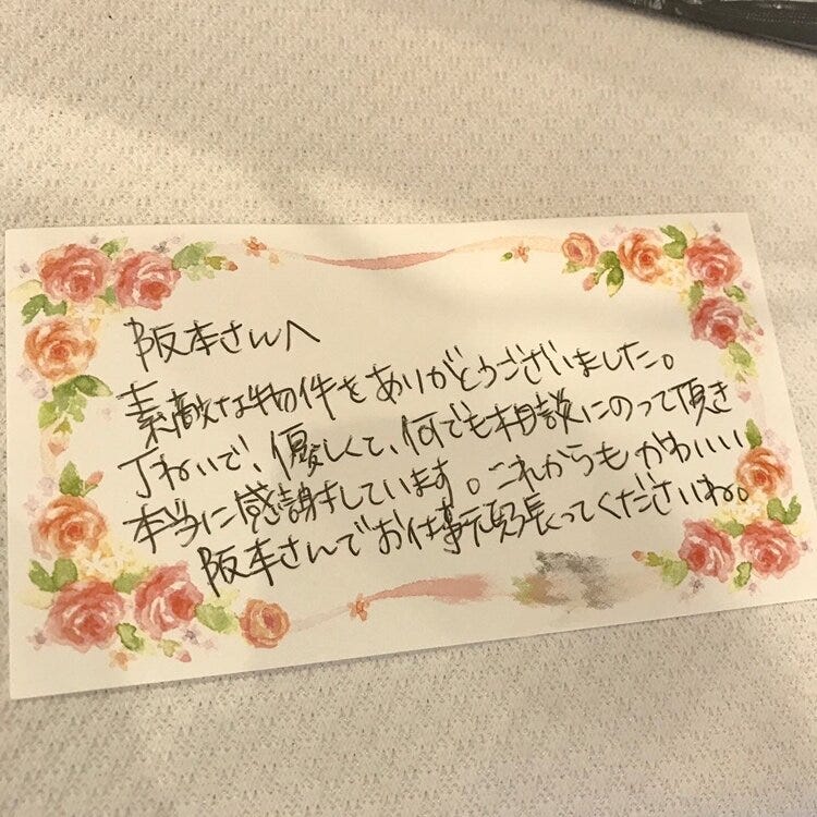 素敵なメッセージまで添えていただいて、担当した店長の目がうるうるしておりました🥺笑