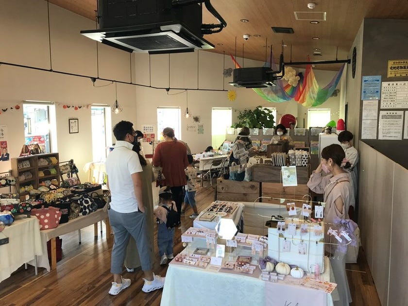 店内ではアクセサリーや木工雑貨、がまぐちなどが並びました♪