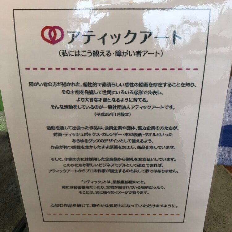 障がいのある方が創作した、独自の世界観と絶妙な色彩で彩られた絵画・版画などの作品を世間に公開することにより、埋もれていた才能ある方が社会参加できるよう支援することを目的に、2011年設立。