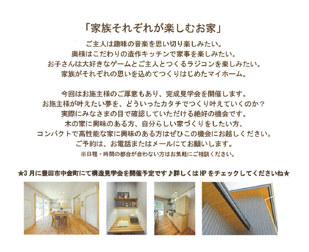 完成したお家を見られる貴重な機会です!