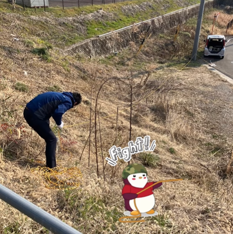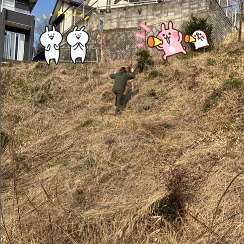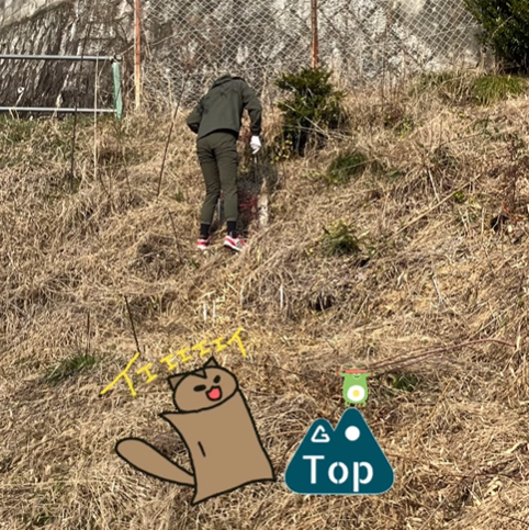 さて、法面を登っている営業のTさんですが、普段から運動しているのでこの程度の傾斜ならへっちゃらな模様🚶♀️💨