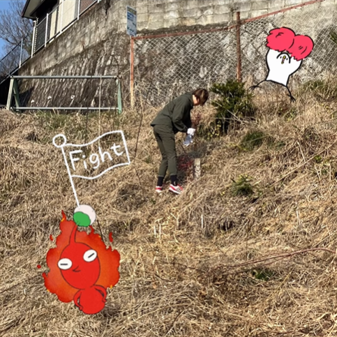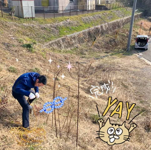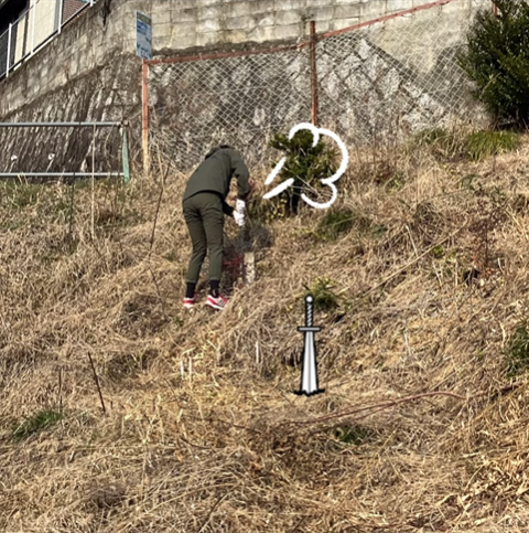 と言う状態だったため、少しでも境界をわかりやすくするために、ロープスティックを土に刺し、ロープを張りました🪢💪
