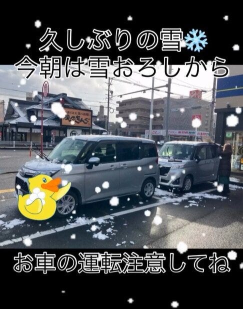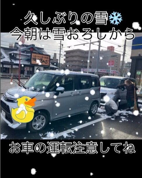 当社の車も雪だらけなので朝から皆んなで雪おろししました🚗こんなに積もったのは久しぶり。。。