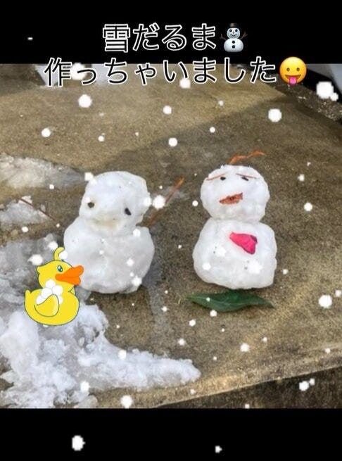 小さな雪だるまは、1時間ほどで、悲しい感じになりましたが、作ってる時は童心に帰って楽しかった♫