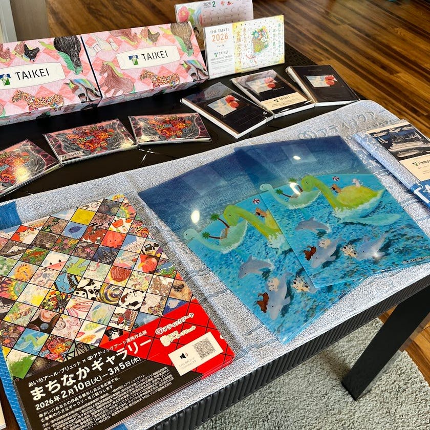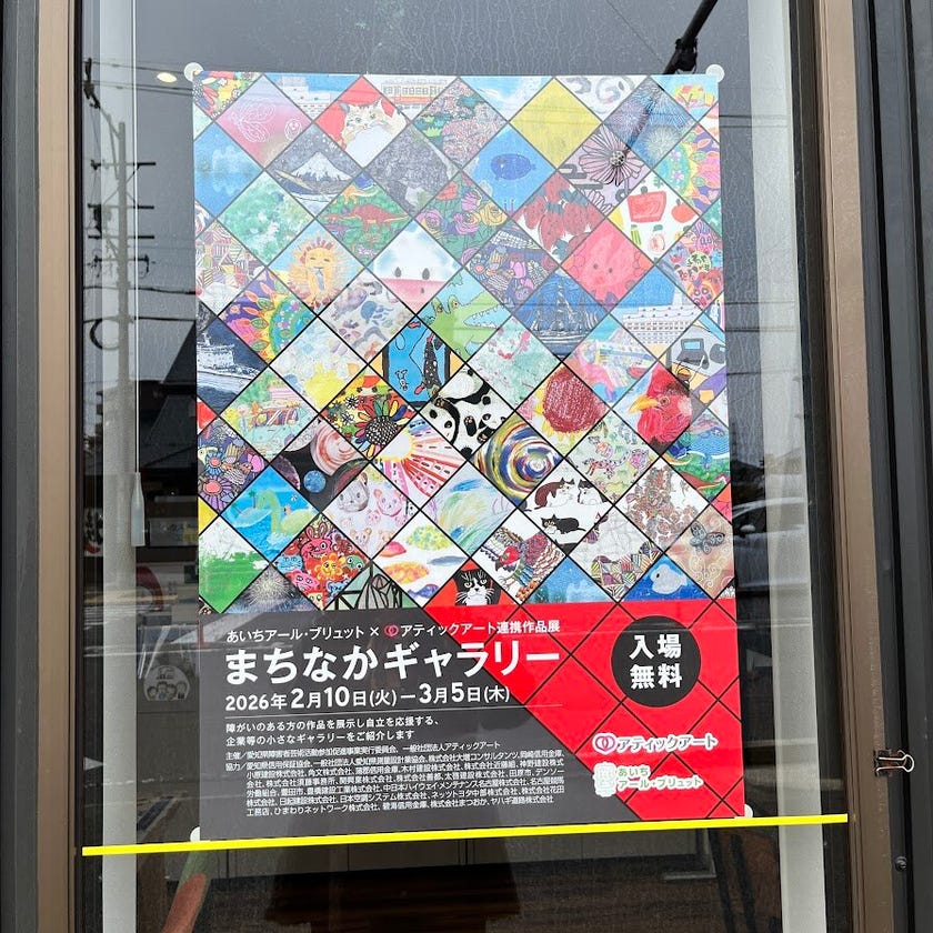 アティックアート会員企業や協力団体の社屋等にて、特別支援学校の生徒や、あいちアール・ブリュット展出展作家の作品と、それを原画として制作されたノベルティグッズを中心に展示する取組です。