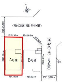 土地面積 実107.39㎡(32.48坪) 接道 北側(公道)幅 約8.0m 間口 約7.15m
